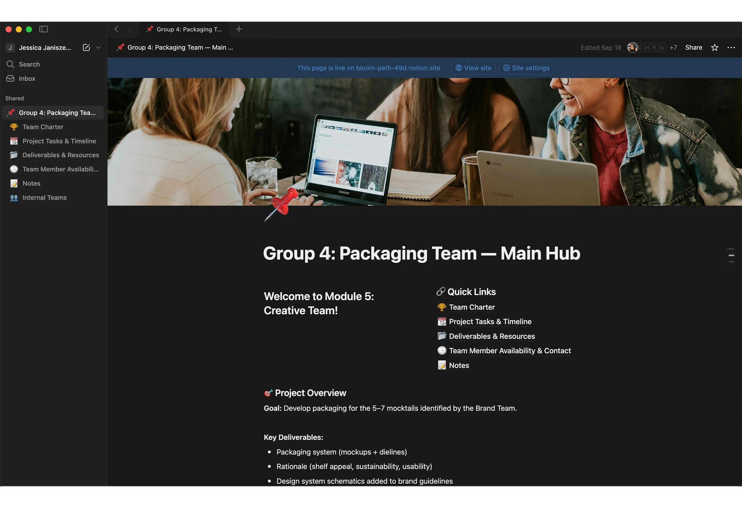 We designed a mocktail brand for our client from the ground up with 4 different teams–Web, Content, Brand, and Packaging. We were expected to collaborate with the team members in our group as well as cross-functional teams and stakeholders in order to align on ideas and vision for the project.